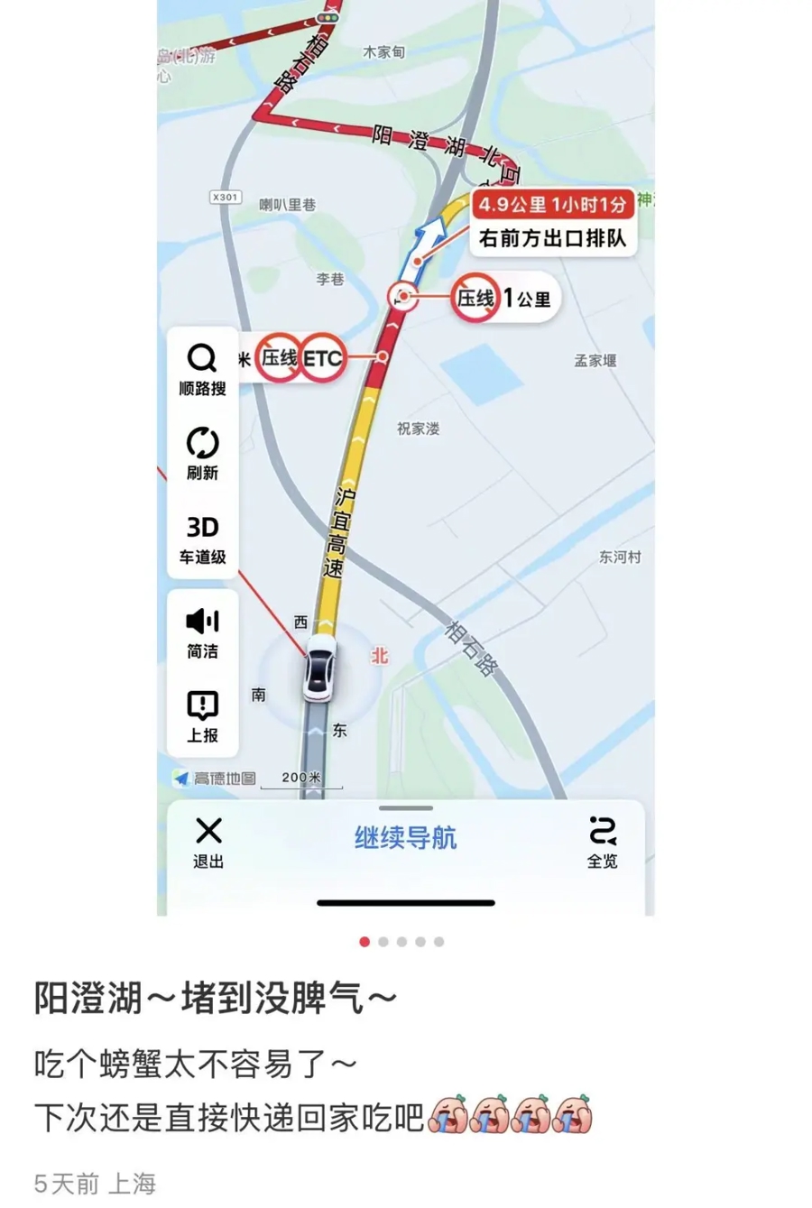 接近非蟹季周末车流量的4倍!